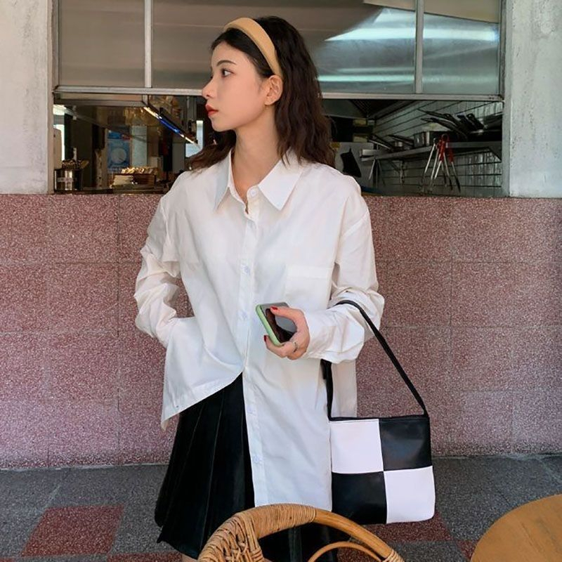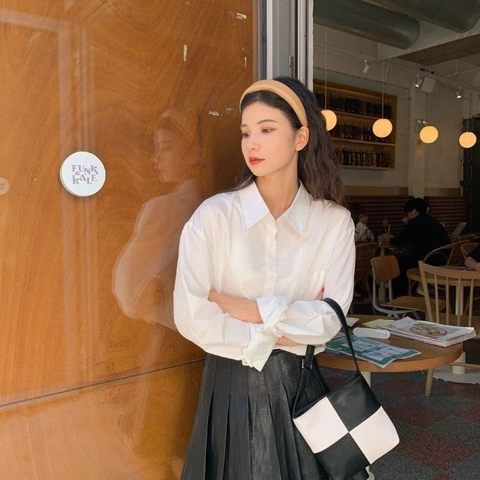 Detail Polos Baju Kemeja Wanita Kekinian Lengan Panjang Blouse