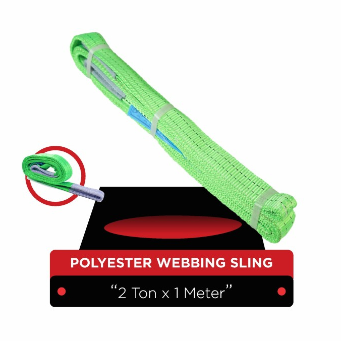 Technical Specification: - Width: 50mm - Length: 1 Meter - Working Load Limit: 2000 kg - Material: Polyester 100% - Pattern: Thickened Double Ply (Folded eye 1/2 width from 2 sides) - Safety Factor 5 : 1