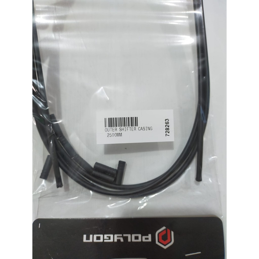 Kabel luar untuk operan gigi / outer shifter casing cable untuk sepeda MTB, lipat. Merk polygon. Panjang 2500 mm. Warna hitam. Sudah termasuk end cup outer. Harga 1 set seperti gambar.