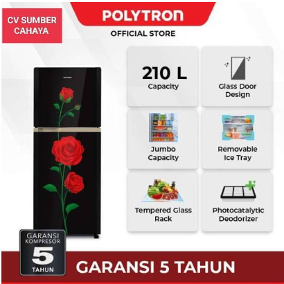 Dengan kapasitas 210 Liter kulkas POLYTRON 2 pintu ini dilengkapi dengan ukuran freezer yang jumbo serta menggunakan rak tempered glass yang dapat disesuaikan ketinggiannya sesuai dengan kebutuhan anda.