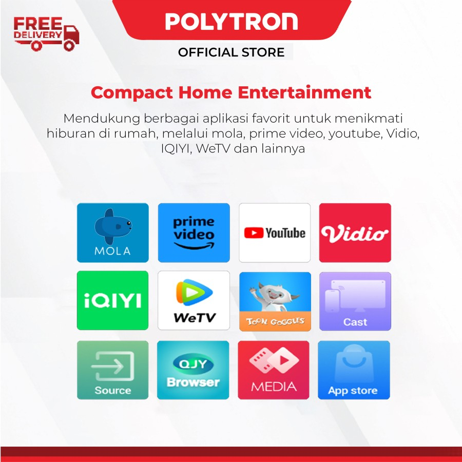 Garansi 5 Tahun (Pelopor LED TV dengan garansi 5 Tahun, termasuk PANEL LED) Digital TV (DVB-T2) : gambar lebih jernih dan tidak berbayang Tampilkan di layar TV dengan fungsi screen mirorring Free akses Mola 12 bulan dan Free akses Vidio Platinum 12 bulan Mengakes aplikasi Mola, Youtube, Prime Video, Vidio