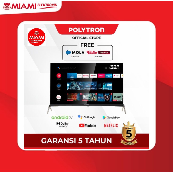 Detail POLYTRON PLD 32AG5959 / PLD32AG5959 Smart Android TV 32 inch Smart Android TV dengan Garansi 5 Tahun dan dilengkapi dengan FREE 12 Bulan langganan Mola dan 3 bulan langganan Vidio Platinum