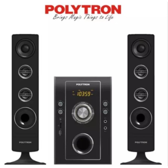 Nama Produk : Polytron Multimedia Audio Tipe : PMA 9506 Warna Hitam Garansi Resmi : 1 Tahun 2.1 Channel Bluetooth Bazzoke USB MP3 Player SD / MMC MP3 Player USB Input SD / MMC Input Built in FM Radio Ambience Light Terminal Line IN Terminal AUX IN Power Output : 35 Watt RMS Daya : 200 Watt Tegangan : 220VAC 50Hz