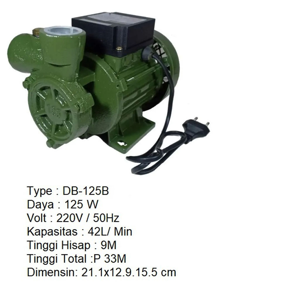 Pompa Air EFOS DB-125 / Pompa Air DB 125 EFOS / Mesin Pompa ●Oleh karena itu, kami selalu sarankan agar pembeli MENAMBAH extra packing kardus + buble wrap di pilihan produk ✌ * Pompa air type kecil DB-125 * 220 V/50 Hz * Daya keluaram 125 W * Daya hisap max 2 M * Suhu cairan max 35 C * Kapasitas max 30 Ltr/min * Pipa 25 mm (1 inch) x 1 inch * Kapasitor 6 uf / 450 V * 2850 rpm