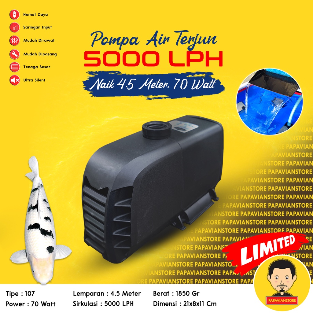 Hobi & Koleksi > Aksesoris Hewan Peliharaan > Kebutuhan Akuarium > Pompa Air Mesin Filter Celup Sirkulasi Kolam Ikan Koi Besar Low Watt Aquarium Tank Submersible Hidroponik Hydroponic Water Pump Waterfall Air Terjun Hias - 4500 5000 5500 LPH Liter Per Jam 4 4.5 5 Meter Ketinggian 5m P015