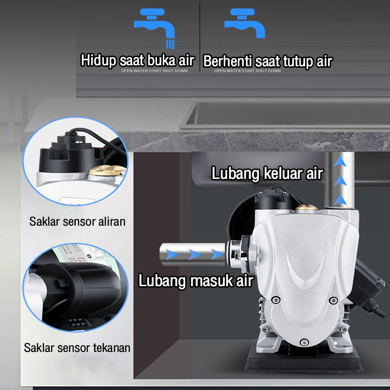 Pompa air Otomatis 250W Mesin Pompa Air Pompa Air Listrik Pompa Pendorong Tekanan Air Booster Pump Mesin Pendorong Air Shower Water Heater Booster Pompa Booster Otomatis