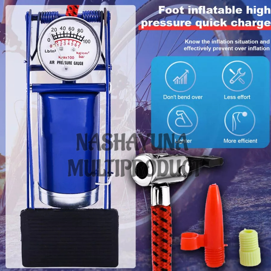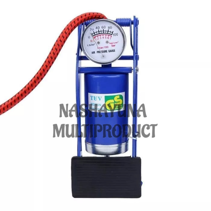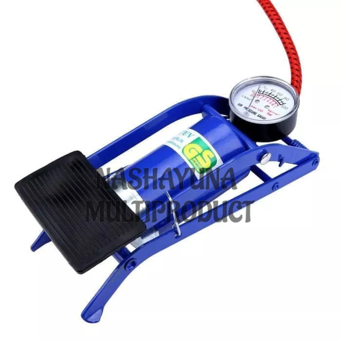 Pompa Angin Manual Injak Kaki 1 tabung Penting, meteran yang terpasang di pompa injak hanya sebagai hiasan saja (tidak berfungsi) Suka sebel saat ban motor atau mobil kempes di tengah jalan? Capek dorongnya, kadang sudah capek dorong masih saja gak ketemu bengkel. Nunggu mobil derek akan berjam-jam, buang waktu.