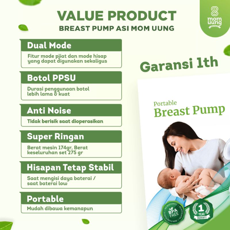 Pompa Asi Mom Uung Pompa ASI dengan mudah dan nyaman tanpa sakit dan berisik.