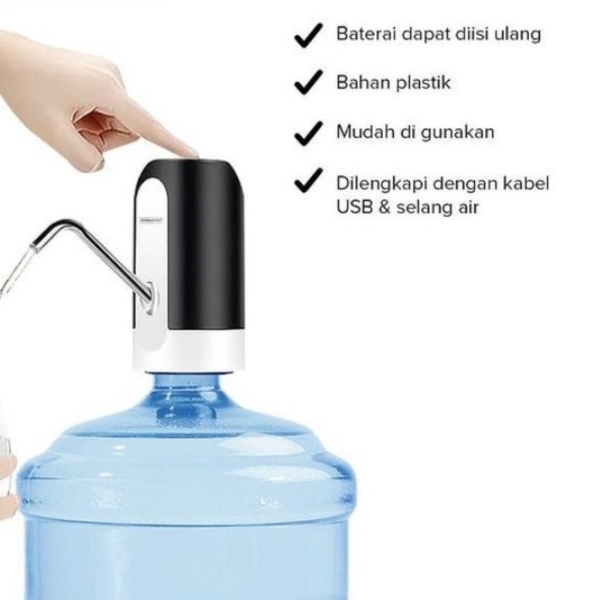 - Terdapat Kabel USB - Daya 4 Watt - Terdapat Selang Untuk Di Dalam Galon Air - Terdapat 1 Ujung Pipa Air - Sistem Charger - Mudah Di Gunakan - Mudah Di Bawa Kemana-Mana - Lebih Higienis Dan