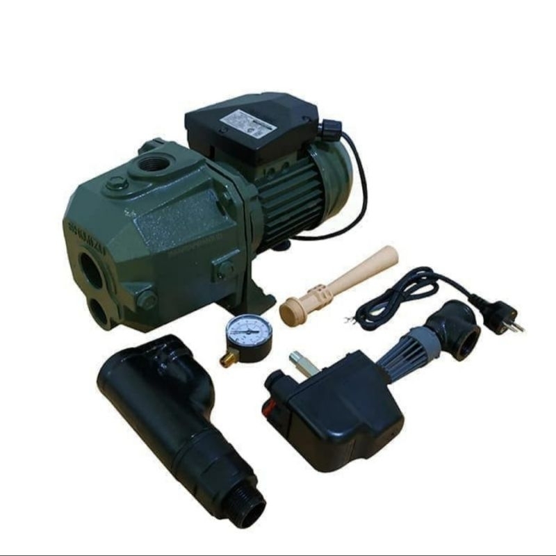Daya Output Listrik : 250 Watt Daya Input Start : 580 Watt Daya Hisap : 15 meter (permukaan air) Daya Dorong : 60 meter (max) Total Head : 75 meter Debit Air : 31 liter/menit (pada head 24 meter), 10 liter/ menit (pada head 42 meter) Inlet : 1 1/4 Inch dan 1 Inch Outlet 1 Inch Otomatis : Tidak Tanpa Tabung