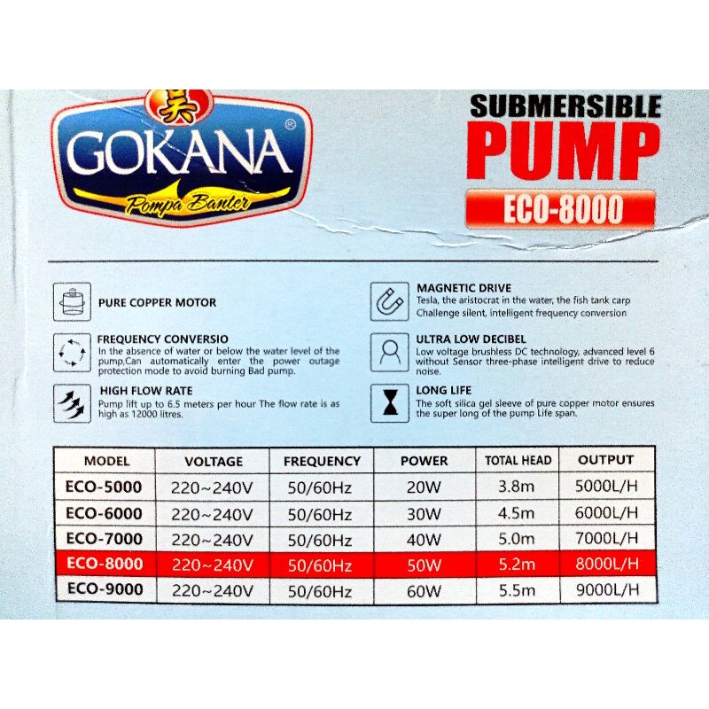 Detail POMPA KOLAM SUBMERSIBLE PUMP GOKANA ECO 8000