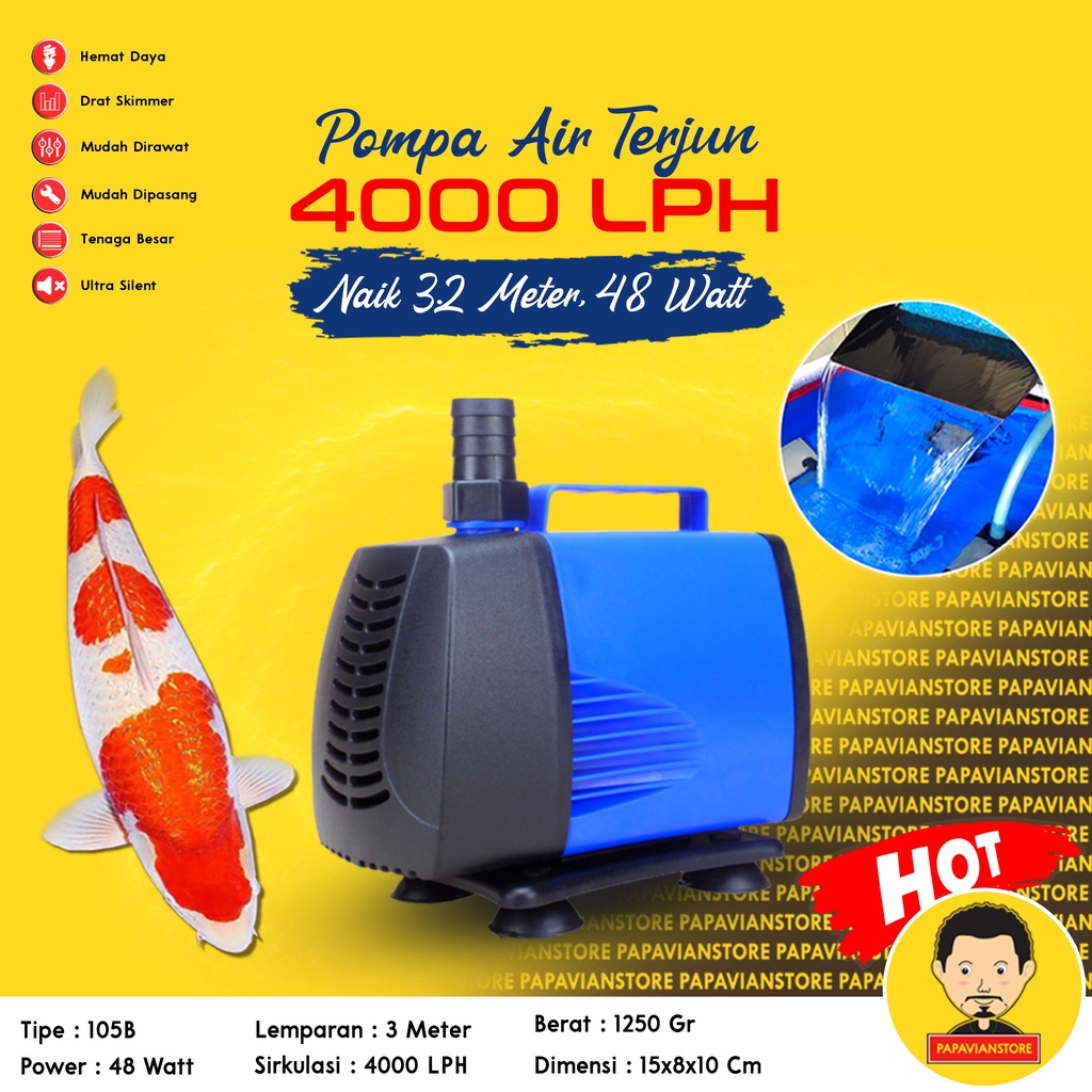Hobi & Koleksi > Aksesoris Hewan Peliharaan > Kebutuhan Akuarium > Pompa Mesin Filter Air Kolam Ikan Hias Koi Aquarium Tank Predator Submersible Hidroponik Hydroponic Water Pump Celup Waterfall Air Terjun Rendam - 4000 LPH Liter Per Jam 3 Meter Low Watt Rendah Daya Ketinggian 3m P019