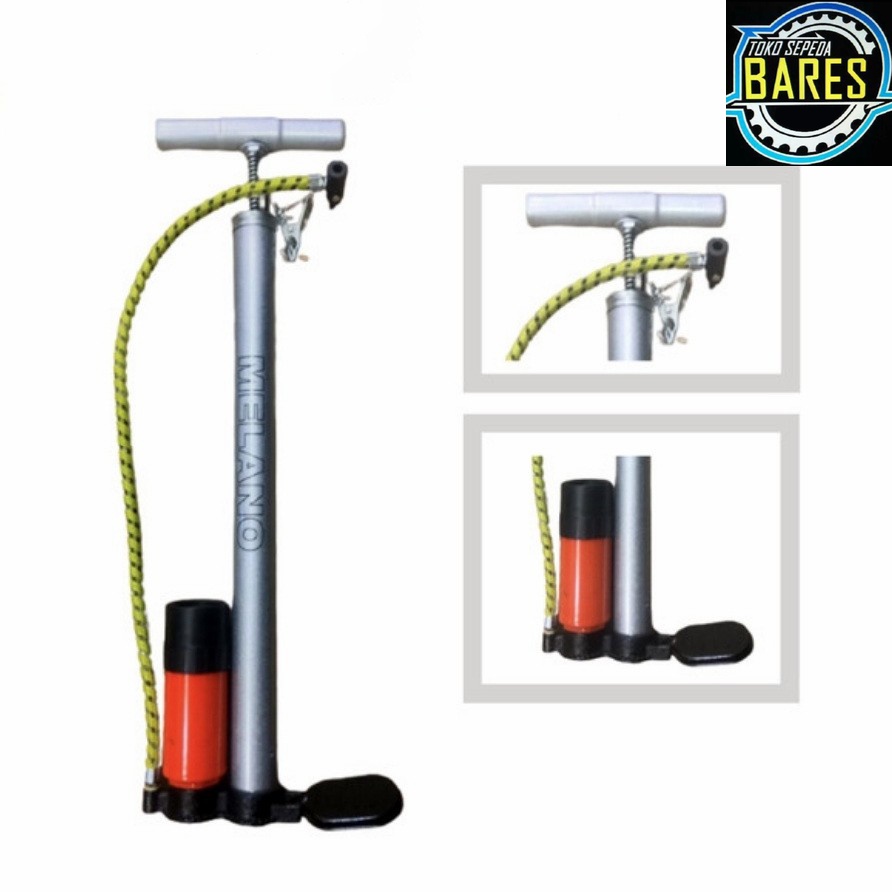 Pompa Meter Merk Melano Tabung Meter - Merk: Melano - Model pompa angin tabung meter - Bahan: Steel - Finishing: Anodized - Dimensi : 59x16x7cm - Panjang selang +/-60cm - Pompa angin ban serbaguna bisa dipasang adaptor untuk balon, bola, dll - Untuk sepeda motor tubeless masih bisa, tapi kalau sudah kempes dianjurkan pakai compressor - Dilengkapi dengan tabung udara sehingga tidak memerlukan tenaga lebih saat memompa - Ada pijakan dan barometer pengukur tekanan ban - Bisa untuk dop motor (AV) dan biasa