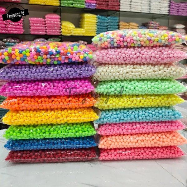 Detail (pon) Manik Bulat Pastel Mote Susu Manik Akrilik Bahan Kerajinan