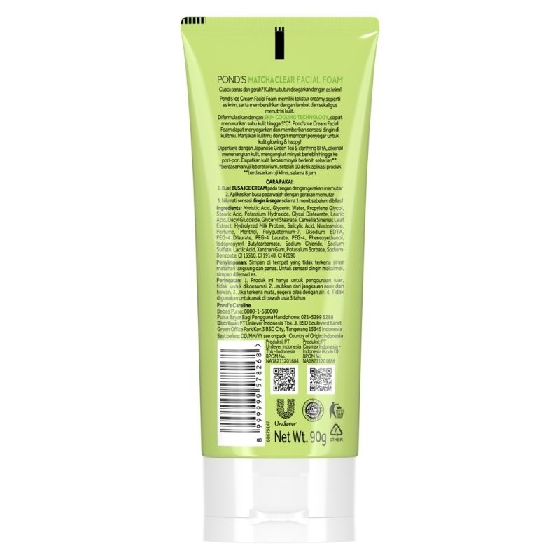-MATCHA CLEAR- Facial cleanser yang memberikan sensasi dingin dan segar, diformulasikan dengan skin cooling technology sehingga dapat menurunkan suhu kulit hingga 5 derajat Celsius*. Dengan tekstur creamy seperti es krim PONDβS Matcha Clear facial foam mengandung Japanese Green Tea extract dengan BHA untuk mengangkat minyak berlebih dan menyerap & mengangkat kotoran