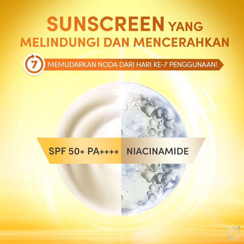 - Formula ringan cepat menyerap - Dengan kekuatan Serum Niacinamide - Menyerap lebih ke dalam kulit - Menghilangkan noda akibat matahari - SPF 50 menangkal sinar UV - Cegah noda muncul kembali