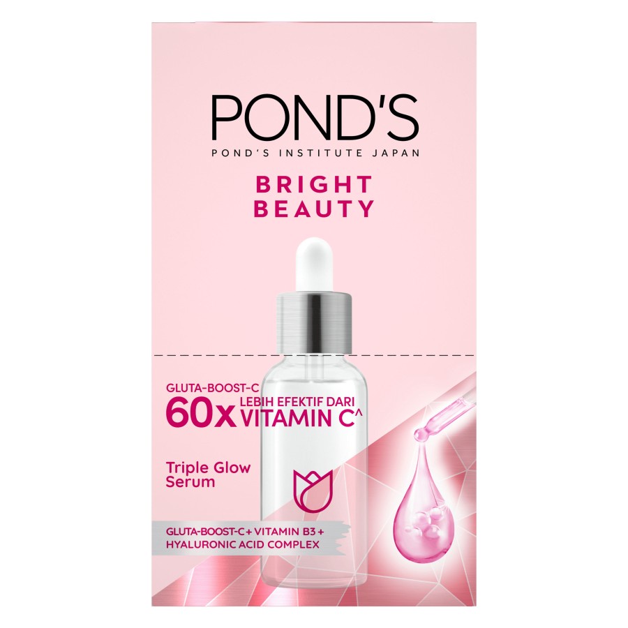 POND’S Bright Beauty Triple Glow Serum merupakan konsentrat serum pencerah yang menggabungkan 3 kekuatan terbaik. Mampu bekerja 60X lebih efektif dari Vitamin C^, untuk pancarkan Triple Action Glow mu:
