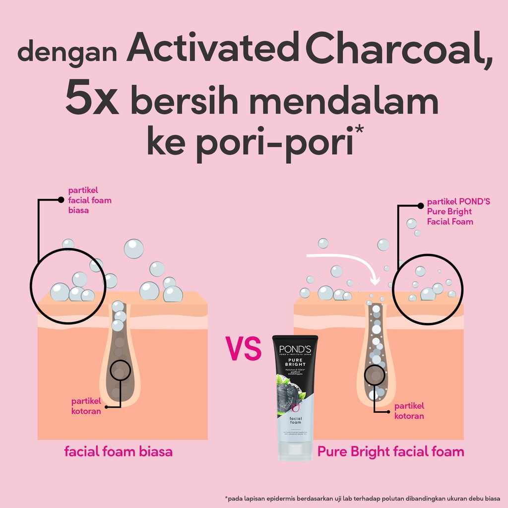 Diformulasikan dengan Vitamin B3 dan Activated Carbon yang dikenal dapat menyerap dan mengangkat kotoran dari permukaan sampai kedalam pori-pori kulit wajahmu. POND'S Pure BRIGHT dengan 3x Purify Power untuk wajah 3x lebih bersih bercahaya.