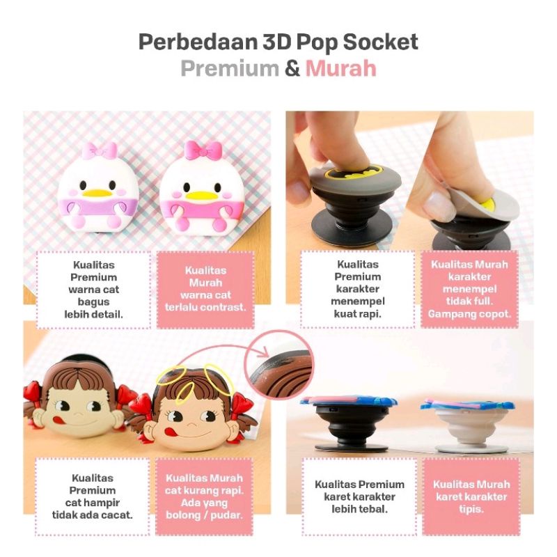 Detail Pop Socket HP 3D Karakter Cartoon Pop Socket 3D Aksesoris Grip HP