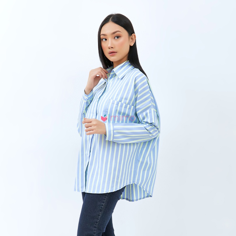 Pakaian Wanita > Atasan > Kemeja & Blouse > Popelin Stripe Kemeja