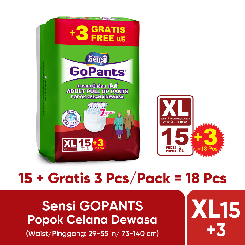 SENSI GOPANTS adalah popok celana dewasa desain terkini. Didesain SLIM dengan model seperti celana dalam, pas dipakai oleh pria dan wanita, tidak tebal atau gembung. Bahan FLEXIBLE yang lembut dan elastis (bebas latex) dan tidak "bising" suara kresek. Teknologi INSTANTLY ABSORB WETNESS yang menyerap cairan seketika sehingga terasa kering dan lebih nyaman. Cocok untuk penderita inkontinensia yang masih aktif (bisa berjalan), para lansia, difabel, keterbatasan mobililitas, penderita dimensia, gangguan ingatan, cocok juga untuk pemakaian pada situasi tertentu dimana sulit akses ke toilet seperti saat upacara, berpergian, pekerjaan tertentu.