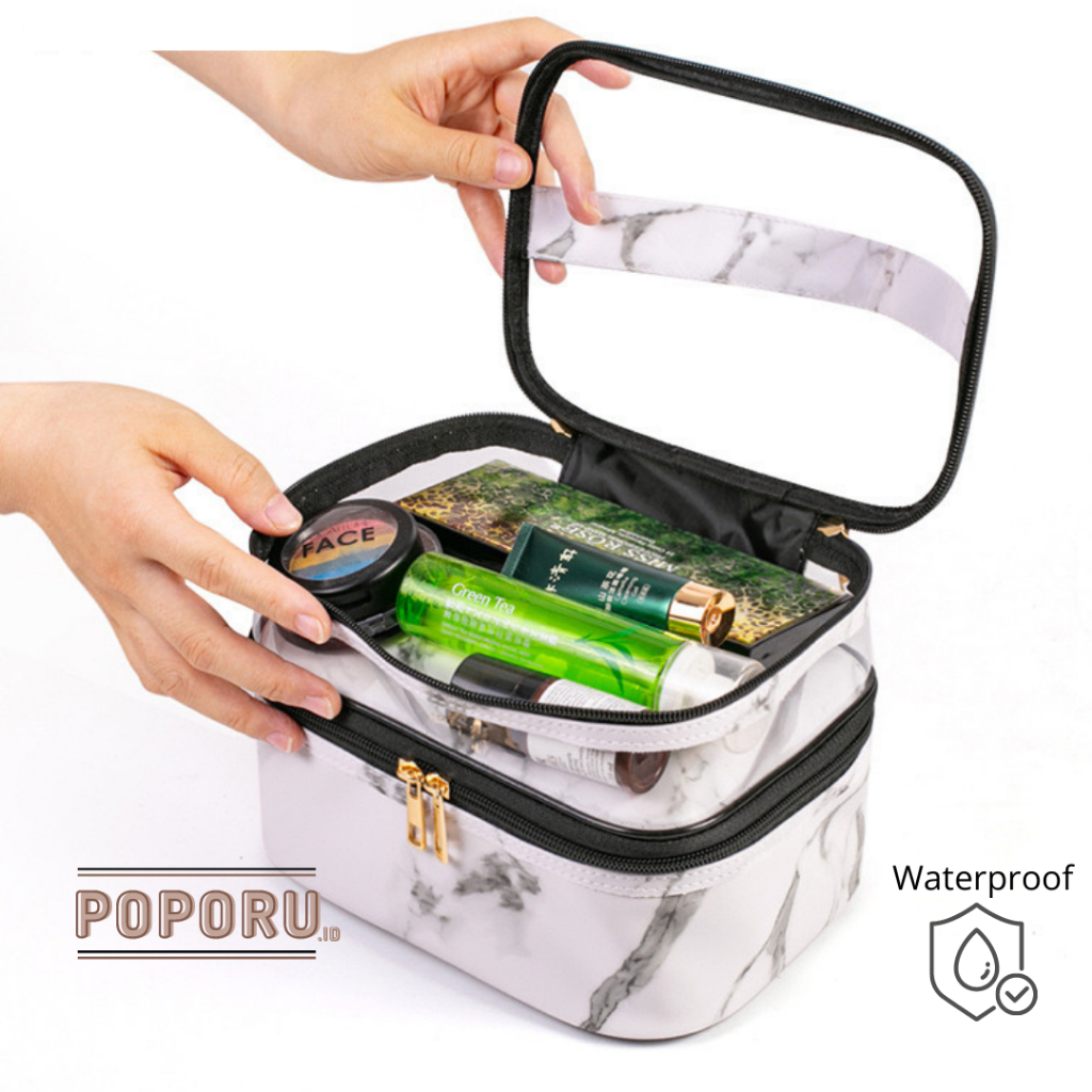 dijamin HIGH QUALITY! ๐ธ Tingat atas (layer 1) transparan cocok untuk skin care ๐ธ Tingkat bawah (layer 2) cocok untuk make up terdapat brush holder ๐ธ Kapasitas besar, jahitan sangat kuat. ๐ธ Bagian luar sangat halus, kuat, dijamin mewah ๐ธ Praktis memudahkan kamu untuk menyimpan produk dan alat makeup kedalam satu pouch, sehingga tidak berantakan dan tersusun rapi. ๐ธ Bahan kulit sintesis glossy ๐ธ Waterproof (anti air) mudah di bersihkan.