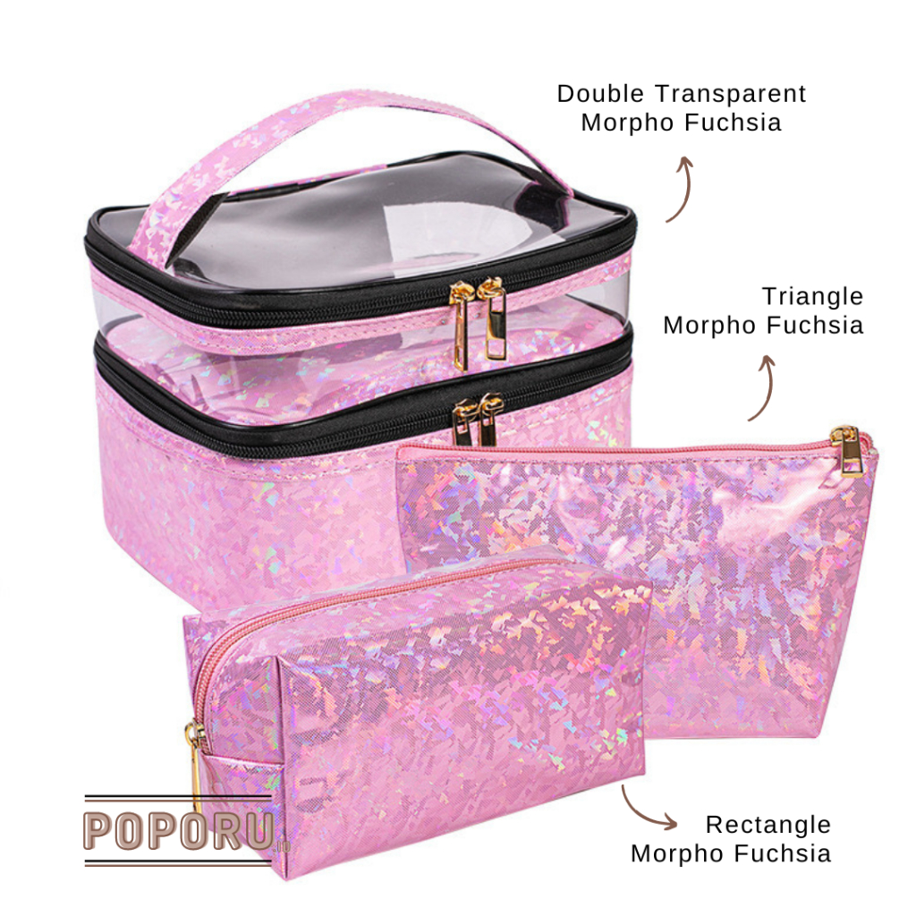 POPORU MORPHO FUCHSIA pouch 4 types - gloss cosmetics bag organizer for make up - tas tempat kosmetik