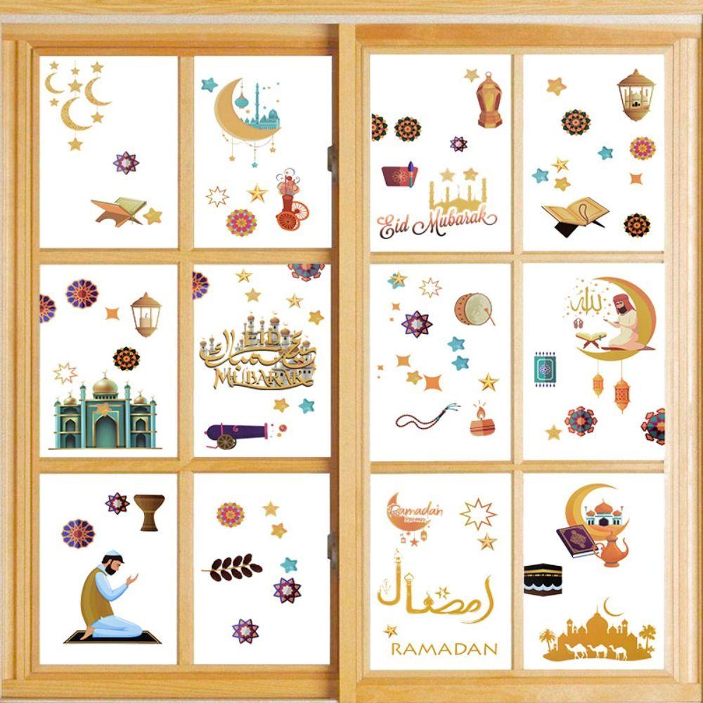 Detail Populer 1set Eid Mubarak Statis Stiker Multicolor Perlengkapan Pesta Festival Islami Jendela Decals