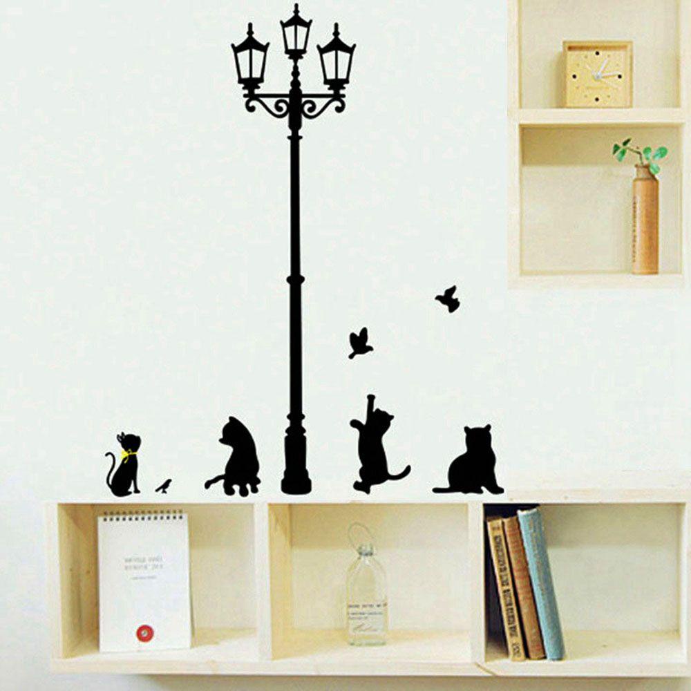 Perlengkapan Rumah > Dekorasi > Wallpaper & Stiker Dinding > Populer 1set /Pack Kucing Bermain Kupu-Kupu Lampu Jalan Ruang Tamu Dinding Kartun Removable Dekorasi