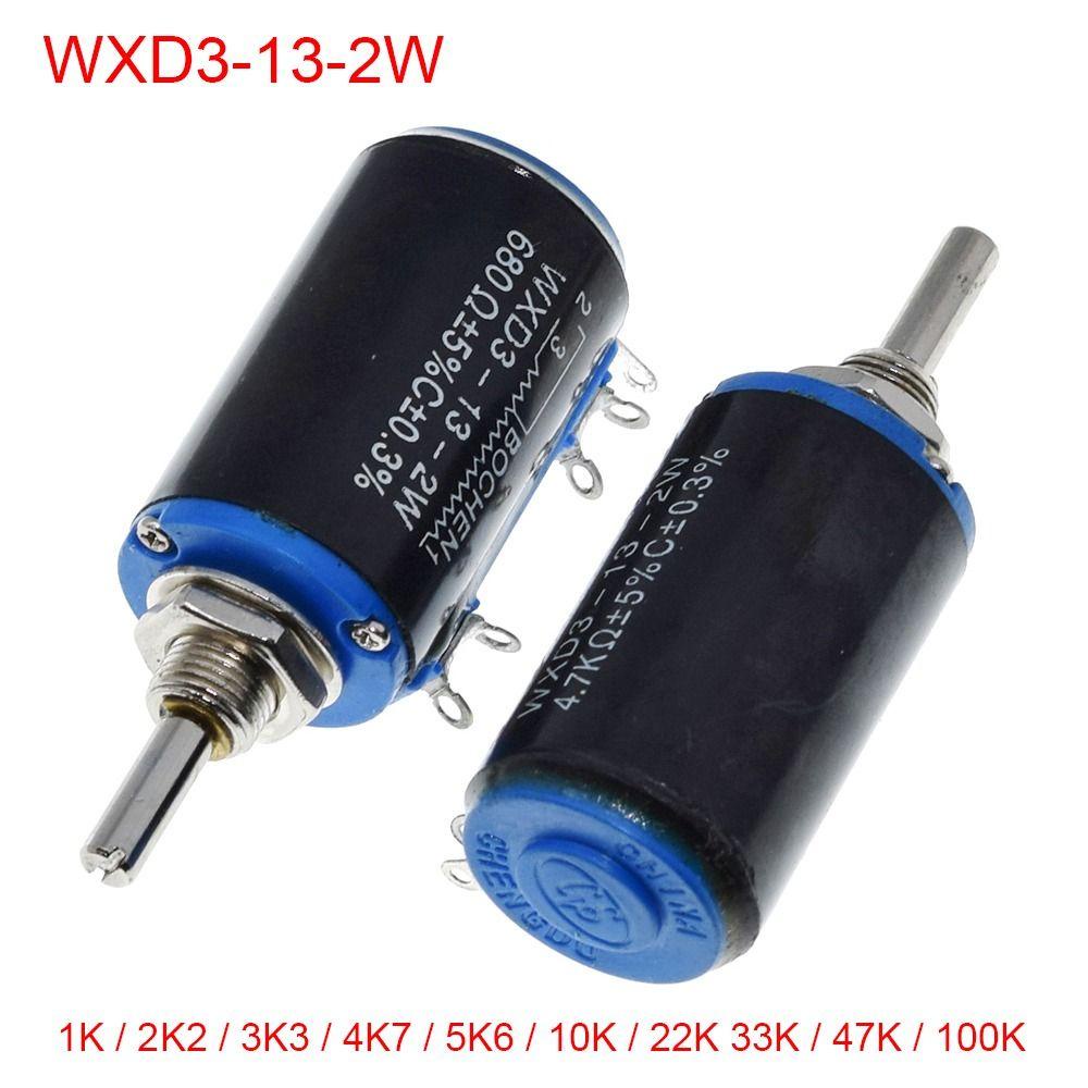 ???? Tm Multiturn Potentiometer WXD3-13-2W Rotary Switch Wirewound 10K 100/220/470/680 Ohm 1K 2.2K 4.7K 5.6K 6.8K 47K 100K Digunakan untuk Resistor Tegangan Resistor Arus Koefisien Suhu Rendah 2W Tahan Lama
