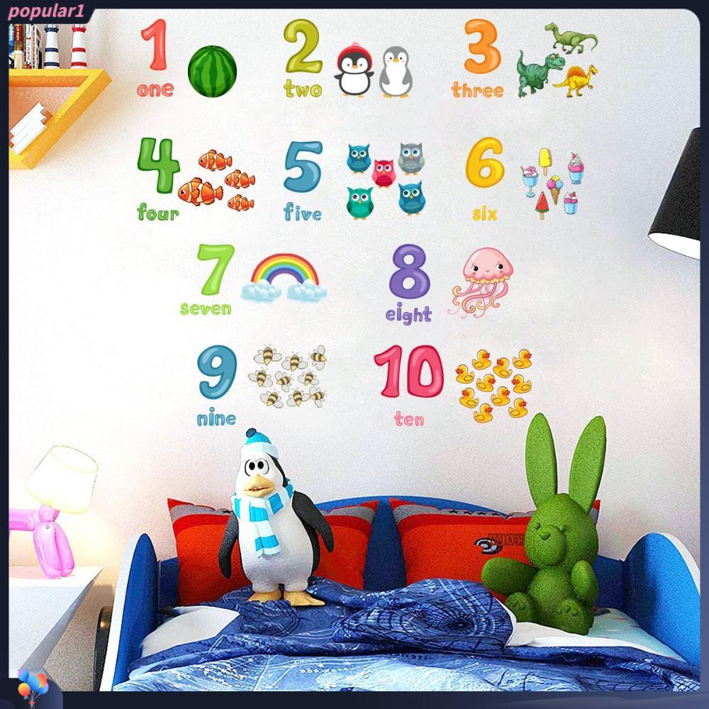 Detail Populer 2Pcs /Set Stiker Dinding Perekat Diri Pendidikan Hewan Angka Arab Dekorasi Rumah