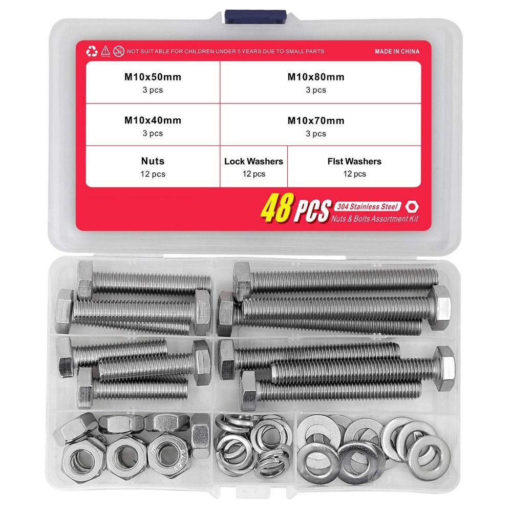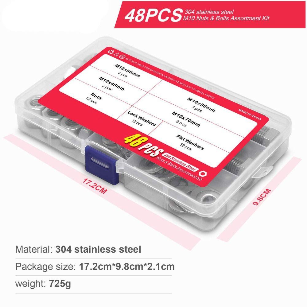 Detail Populer 48pcs Baut Dan Mur M10 Heavy Duty 4ukuran Paling Umum Mesin Cuci Kunci Aneka Kit