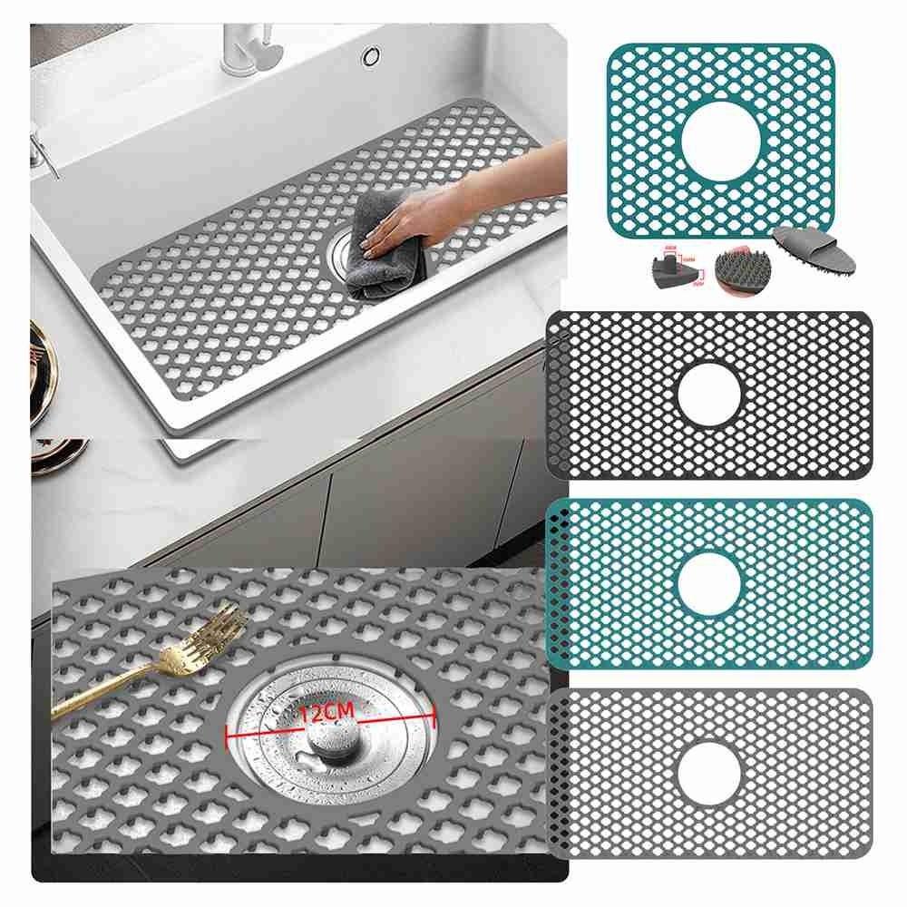Perkenankan sedikit perbedaan dimensi karena pengukuran manual yang berbeda. Pelindung Wastafel Pad Sink Mat Meja Isolasi Panas Pelindung Dapur Pengeringan Anti Slip Tiriskan Cepat Multifungsi Silikon Dapur Rumah