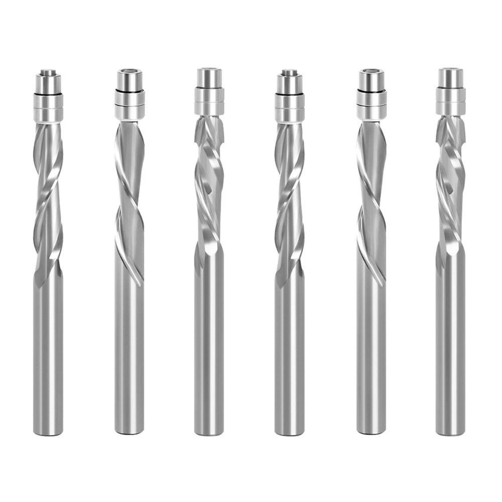 Bit Penghala 1 pc x Bit Penghala Router Bit Woodworking Milling Cutters End Mill Flush Trim Bantalan Karbida Padat Dipandu Dua Seruling 6mm 6.35mm Shank Profesional Kualitas Tinggi