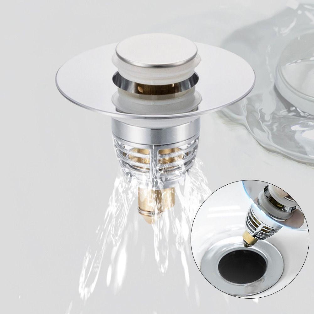 Perlengkapan Rumah > Kamar Mandi > Kamar Mandi Lainnya > Populer Sumbat Saluran Air Wastafel Kamar Mandi Universal 1.02-1.65inch Wastafel Cuci Pop Up Push Type Dengan Hair Catcher