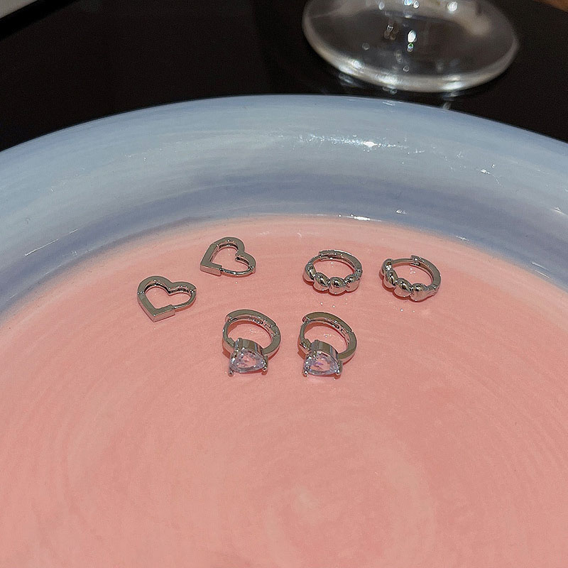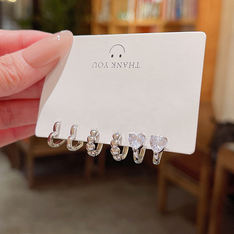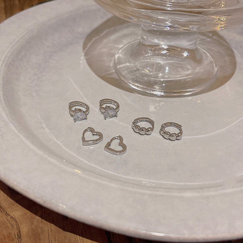 Detail Populer925 Perak Jarum Indah Zirkon Anting Set Telinga Studs Telinga Gesper Mewah Anting Hati