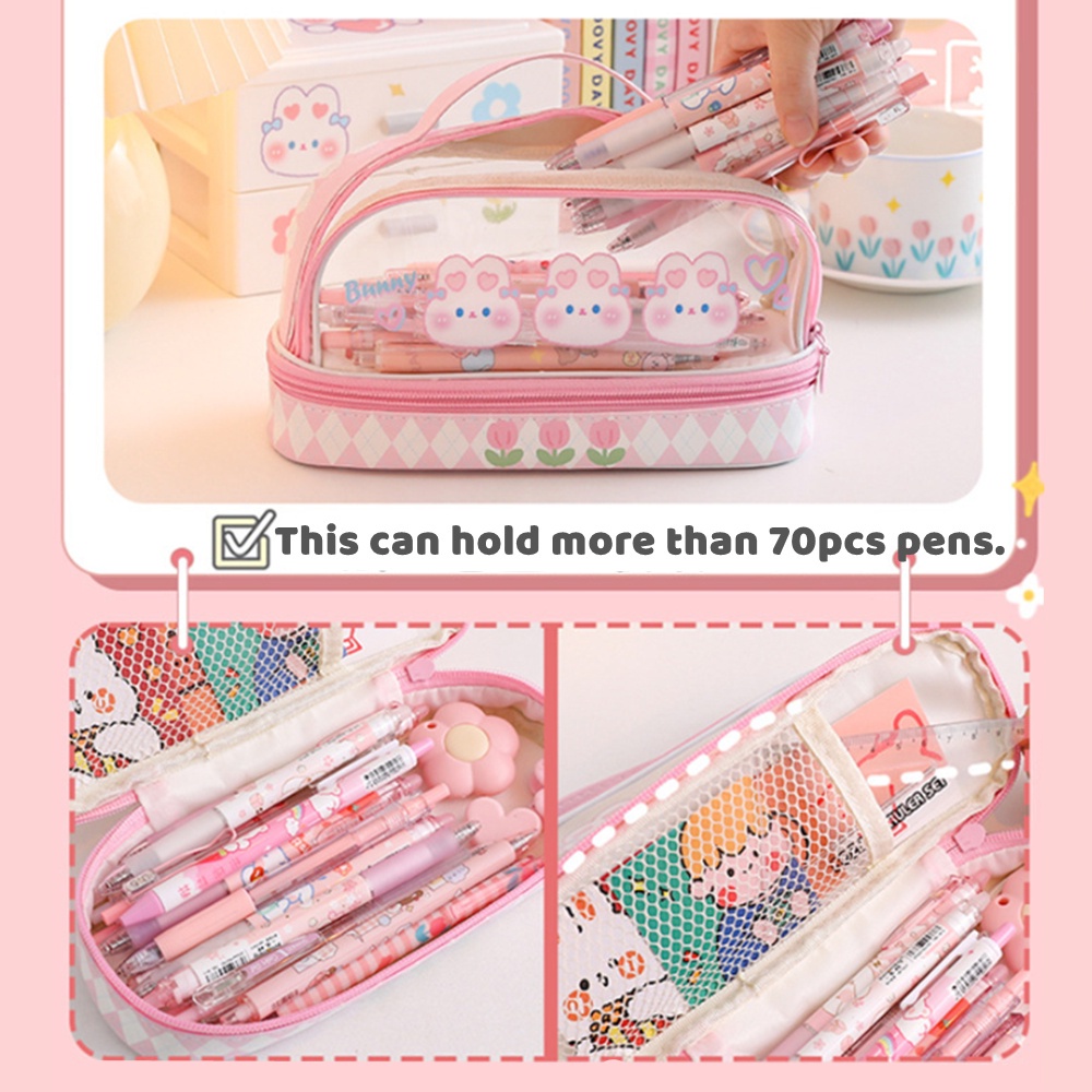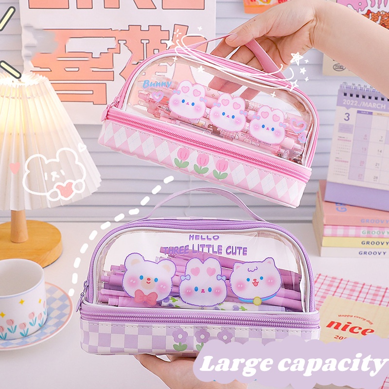 Buku & Alat Tulis > Perlengkapan Sekolah & Kantor > Tempat Pensil > Portabel Pencil Case Kotak Pensil Sekolah Kapasitas Besar Dual Slot Trendy Stylish Alat Tulis