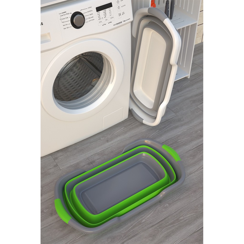 Main Features: - Comfort grip handle for easy carry - User friendly by simply pop-up to open when using and collapses to flat for space saving - Space saving with expanded size: 60 x 40 x 28 cm and it height just 7 cm after folds. Save over 70% space when storage - Perfect design, which all the wall and angles stand relatively straight and without deform - Perfect for bathing pets, soaking and hauling laundry and storage containter for toys, clothes and keep in the trunk of your car