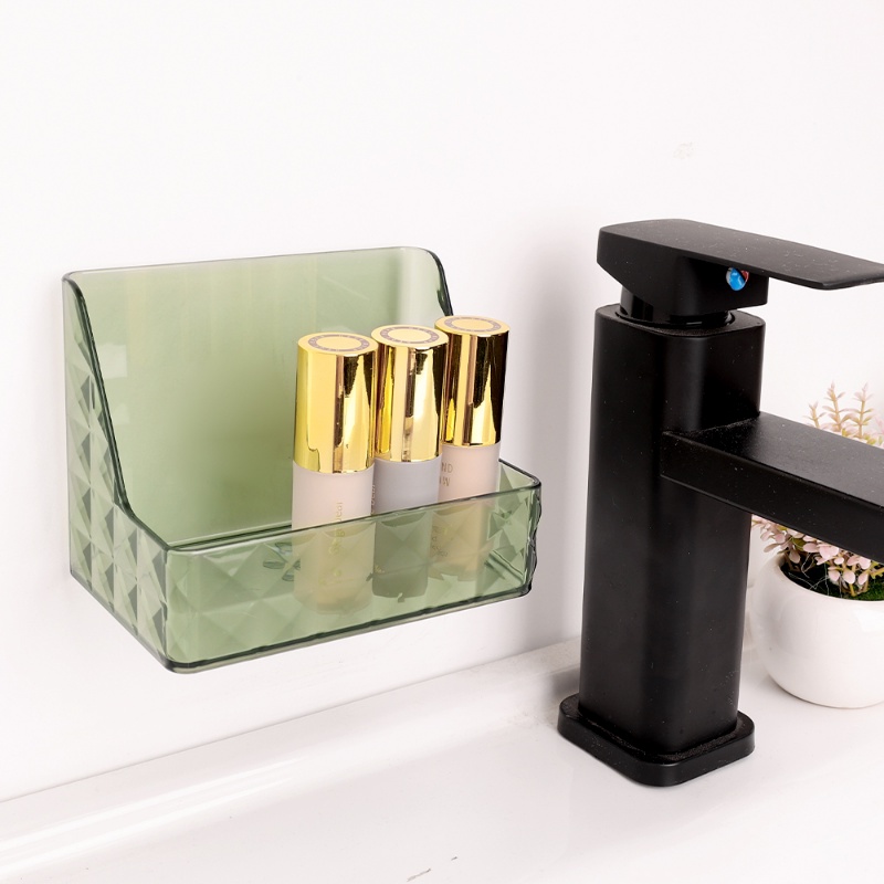 Detail Portable Wall Mounted PET Miring Transparan Storage Box/ Cabinet Self Adhesive Cosmetic Organiser/ Rak Penyimpanan Odol Hemat Ruang Kamar Mandi