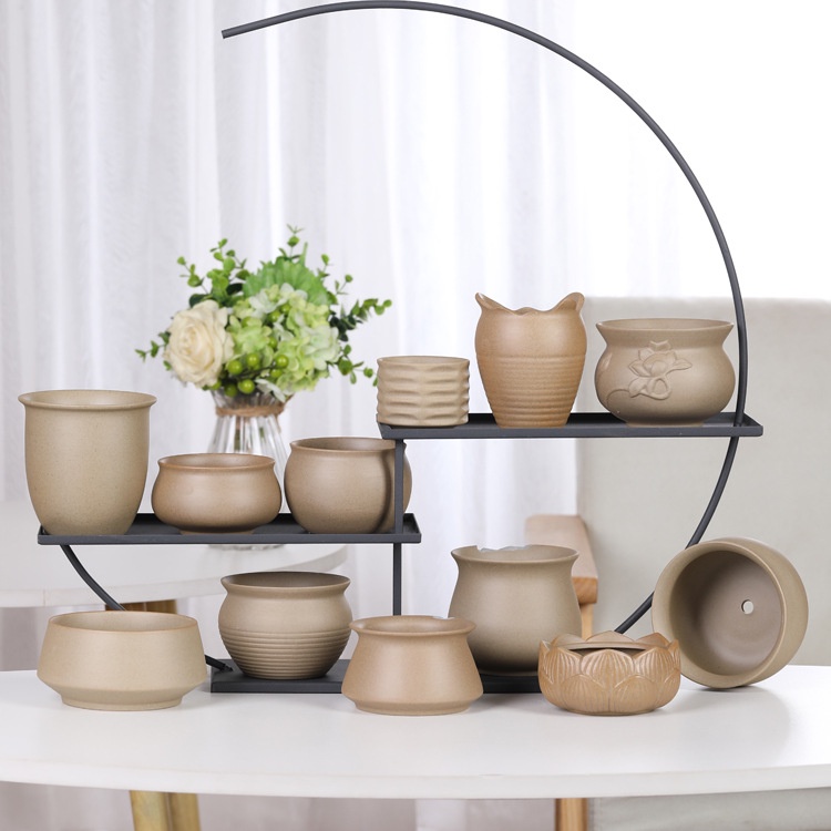 Perlengkapan Rumah > Dekorasi > Vas & Bejana > Pot Bunga Keramik Api Polos, Pot Bunga Sukulen Kaliber Besar, Pot Tanaman Sukulen Hidroponik, Ornamen Desktop, Perlengkapan Taman Dekorasi Rumah