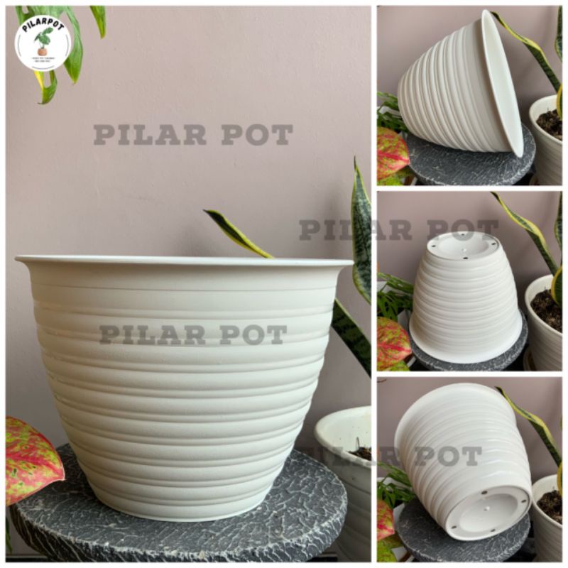 Detail pot bunga tanaman mdn putih 30cm model tawon - MDN 30 PUTIH