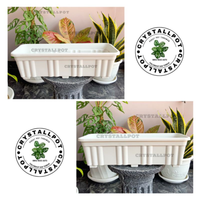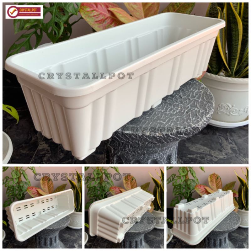 pot berbentuk persegi panjang dengan ukuran 49cm cocok di gunakan untuk bercocok tanam dengan media yang lebih luas dan banyak bisa untuk semua jenis tanaman dan untuk pembibitan tanaman