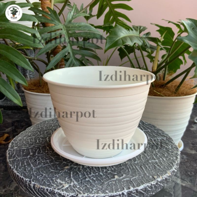 Perlengkapan Rumah > Taman > Pot & Planter > Pot bunga tanaman tawon putih 18cm +tatakan bawah