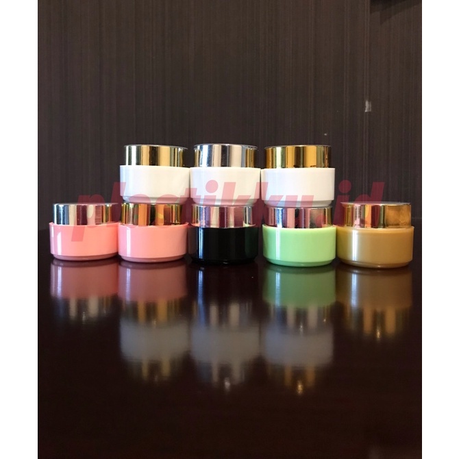 Spesifikasi: - Volume/ukuran: 10gr - 12,5gr - Berat: 23 gram - Warna pot putih/pink/hijau/hitam/emas, tutup lis silver/emas dengan lid dalam. - Tinggi 3,9cm - Lebar tutup 4,5cm - Lebar pot 5cm