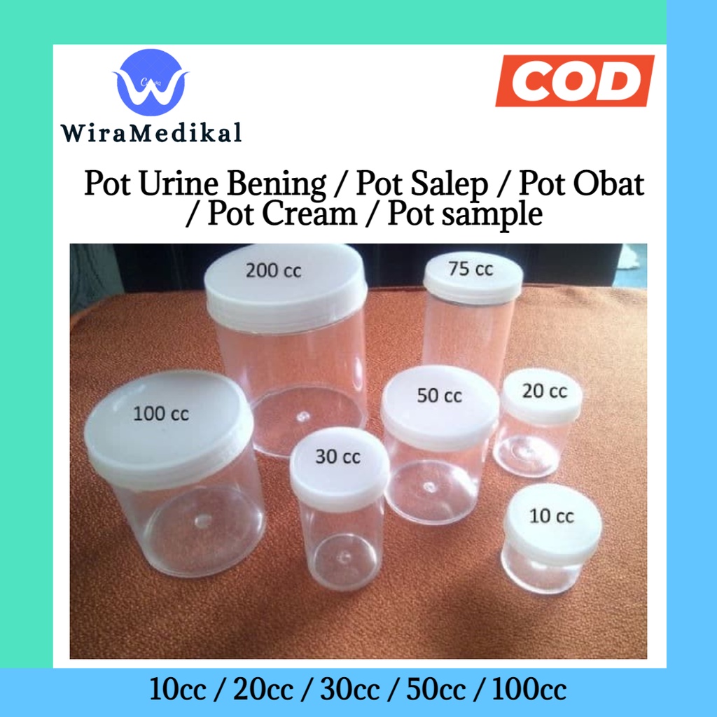 Detail Pot Urine Bening / Pot Salep / Pot Obat / Pot Cream / pot sample / sample container 10cc / 20cc / 30cc / 50cc / 75cc / 100cc