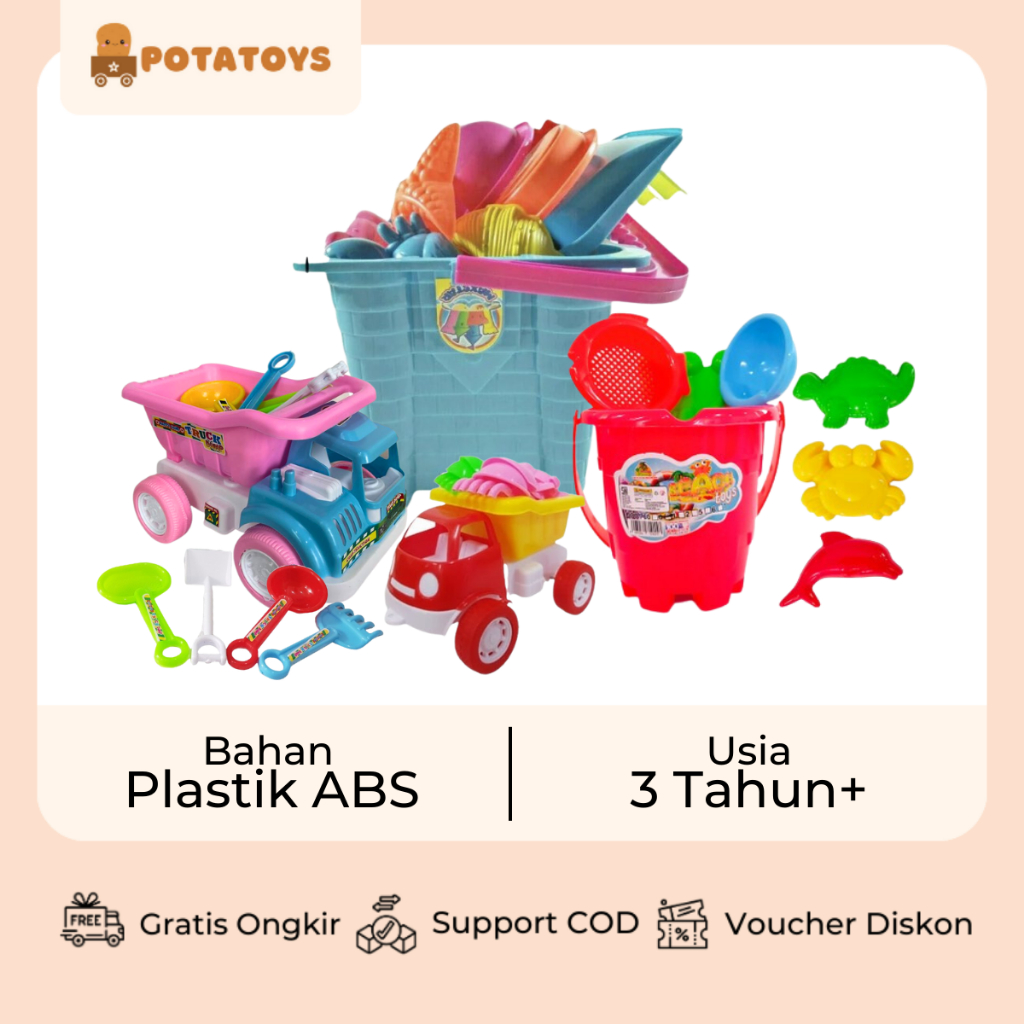 Detail [ Potatoys ] Ember Pasir / Mainan Cetakan Pasir / Mainan Pasir anak / Set Mainan pasir / Mainan Truk Pasir Anak 1 Set