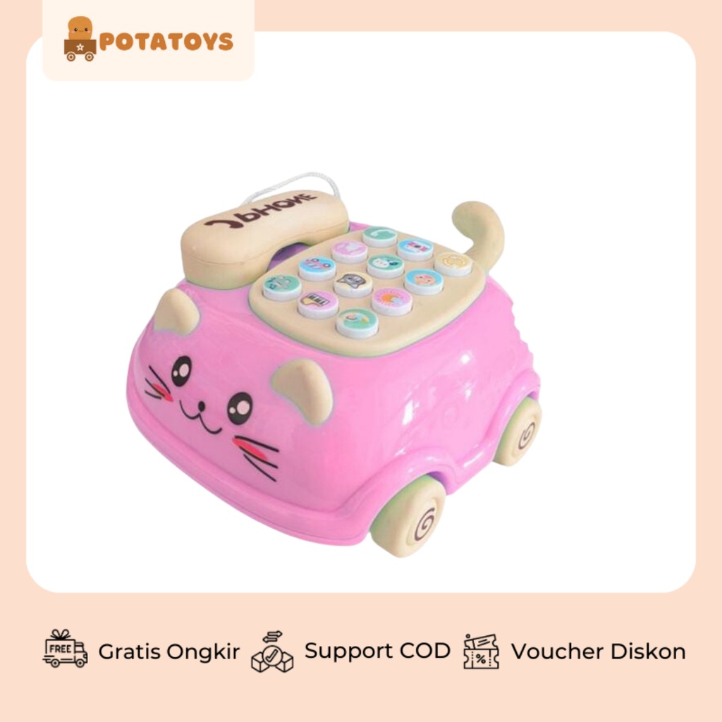 [ Potatoys ] Telephone Cute Car / Mainan Edukasi Anak Telephone Music Car / Handphone Music Berbentuk Kucing