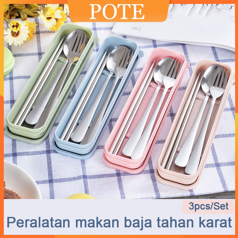 Detail POTE Ecentio 3Pcs Stainless Steel Set Alat Makan Sendok Garpu Sumpit / Spoon Fork Chopsticks Stainless steel cutlery