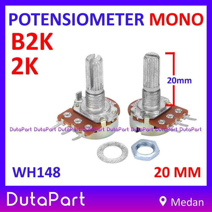 Detail Potensiometer Mono 2K Ohm B2K Potensio Linear 20mm