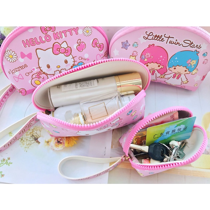Pouch kosmetik make up serbaguna isi 2 My Melody Kuromi Cinnamoroll Pompompurin Stitch Hello Kitty Rapunzel Ariel Ariel